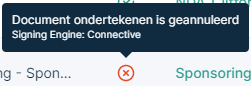 Een rood kruis betekent dat het ondertekenen van het document geannuleerd is.