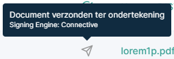 Een papieren vliegtuig betekent dat het document naar de ondertekenaars verzonden is.