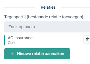 Om een nieuwe relatie toe te voegen klik je op '+ Nieuwe relatie aanmaken'.