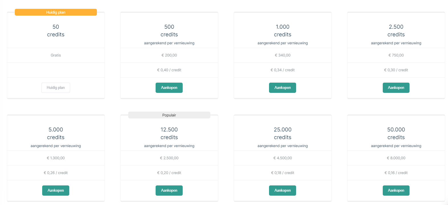 De credits blijven ongeacht de keuze van provider ongelimiteerd geldig. Wanneer je credits opgebruikt zijn, wordt je pakket automatisch hernieuwd en aangerekend.